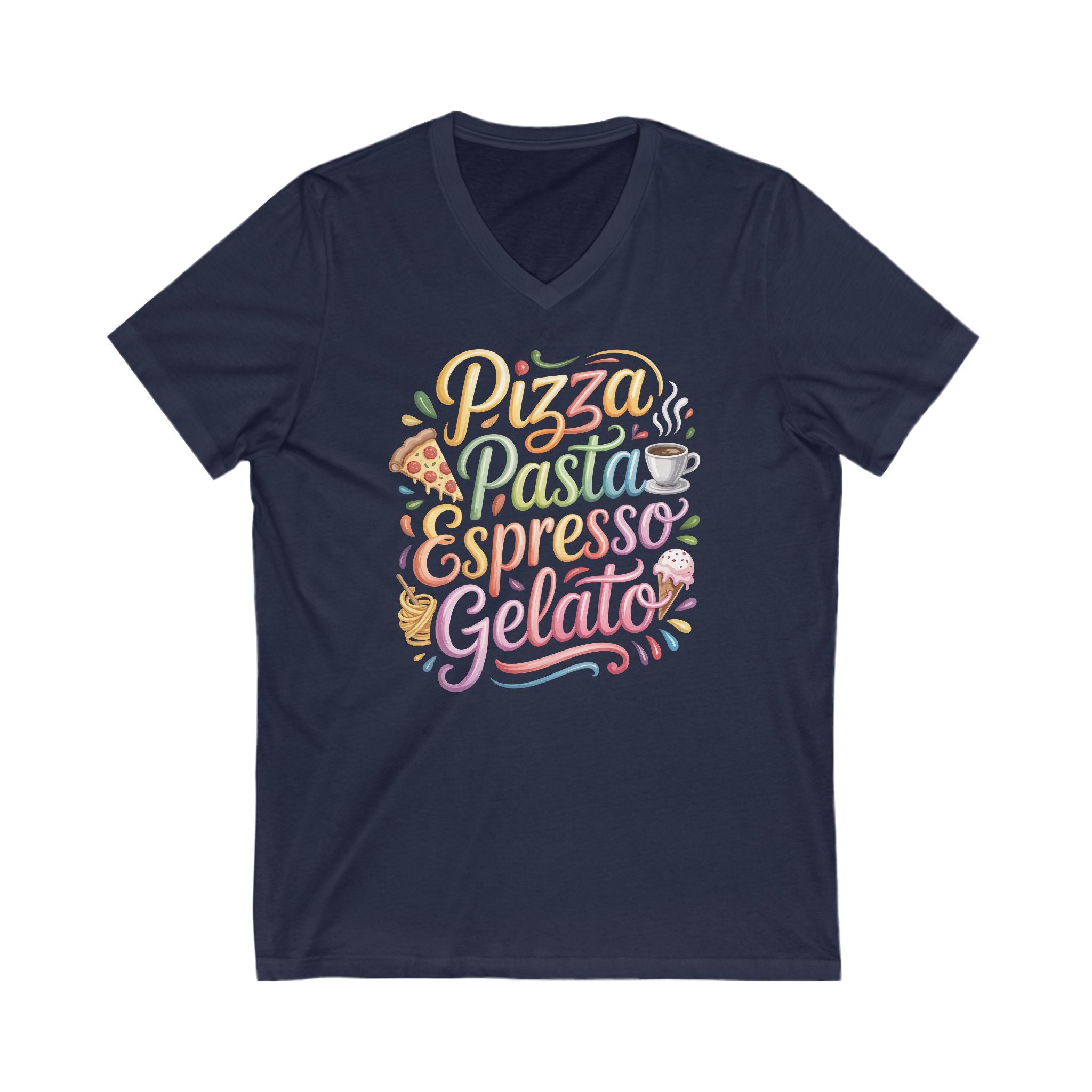 Pizza Pasta Espresso Gelato Italian Shirt | Italy Travel Lover Gift | Unisex Jersey V-neck T-shirt