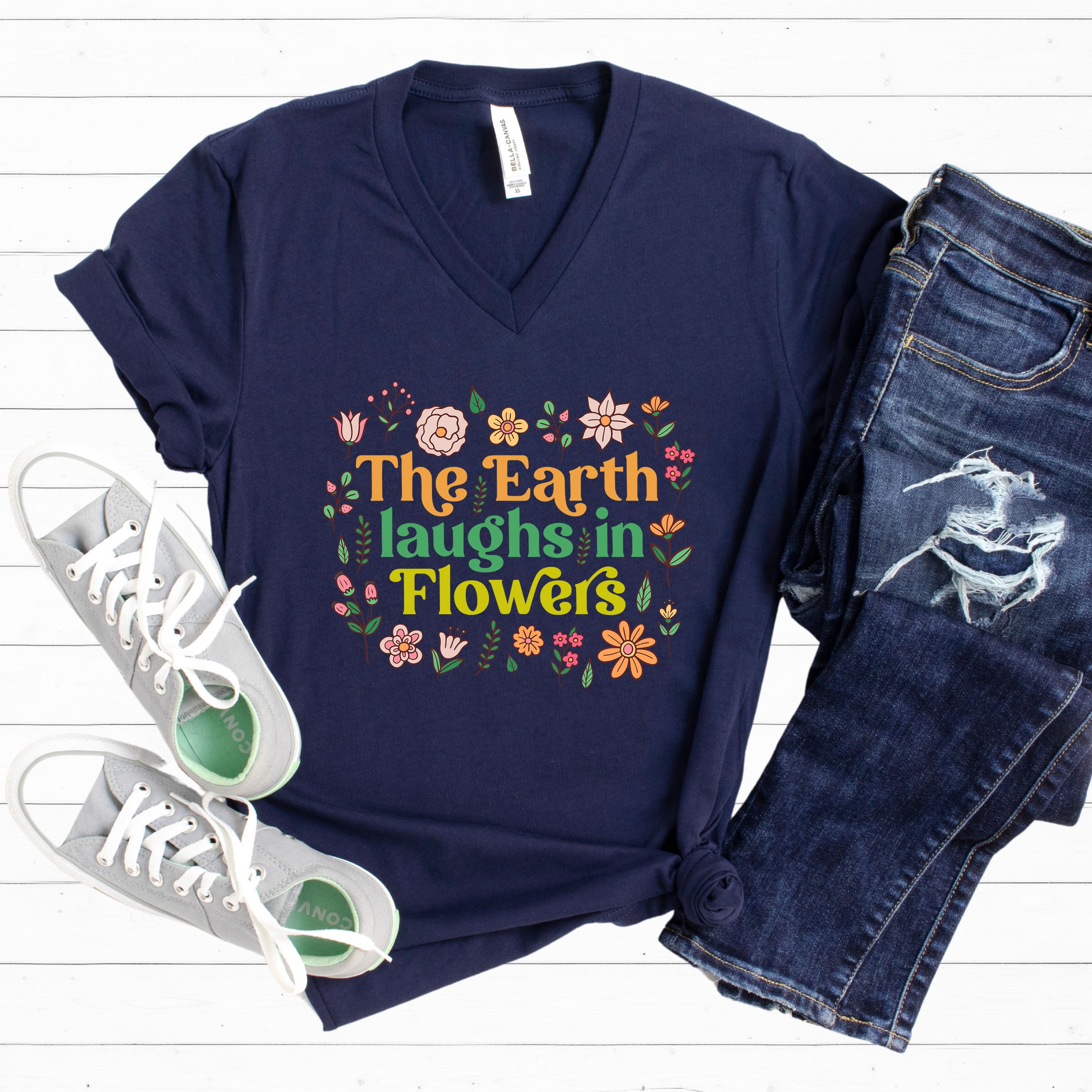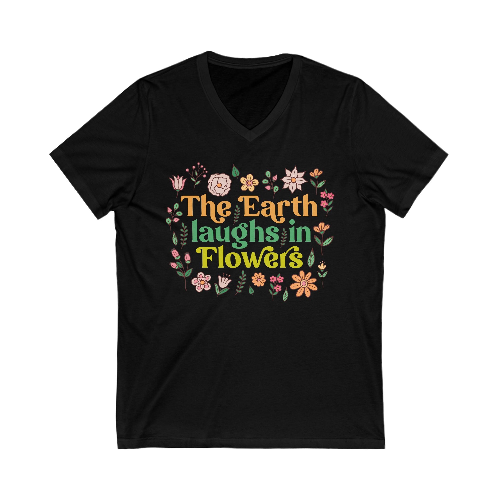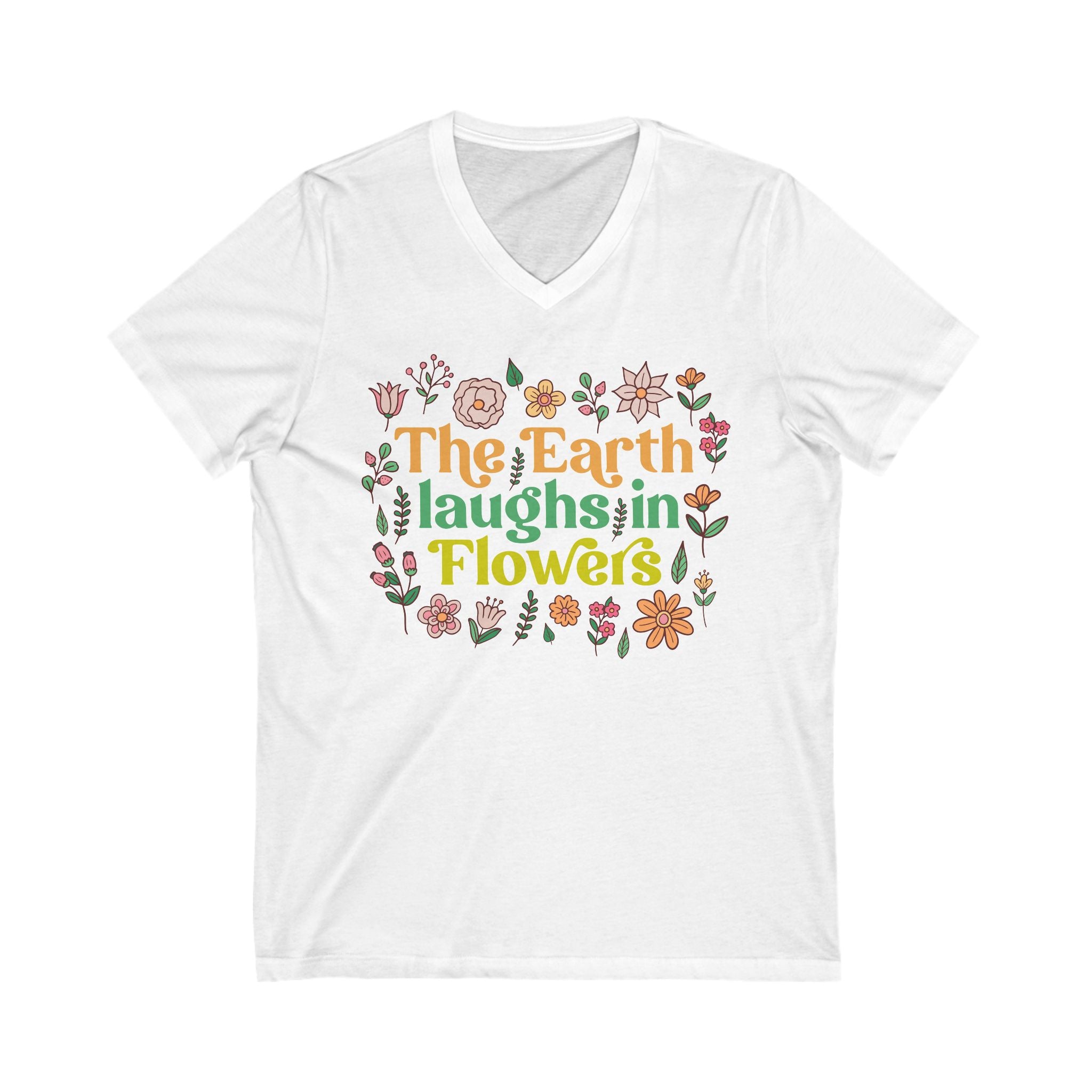 The Earth Laughs in Flowers Earth Day Shirt | Nature Lover Gift Wildflower Shirt | Botanical Poetry Shirt | Unisex Jersey V-neck T-shirt
