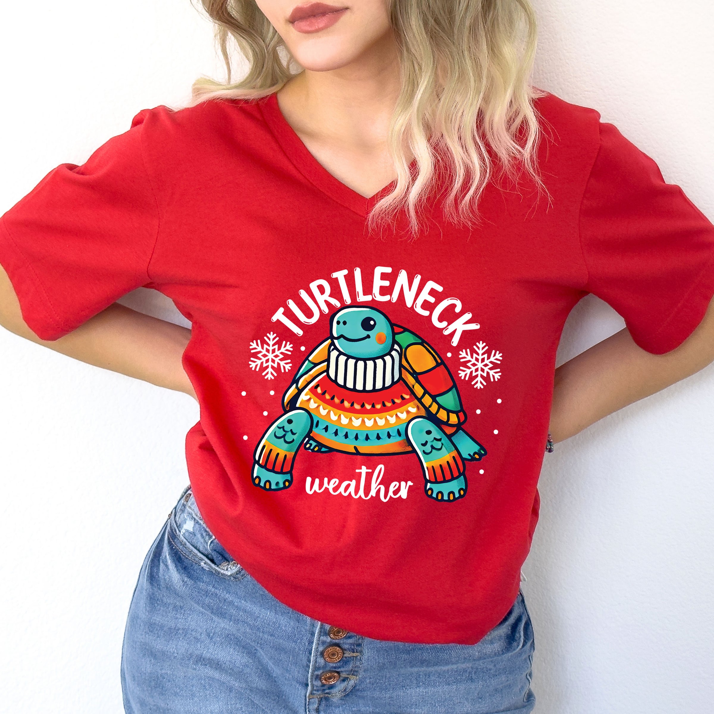 Turtleneck Weather Cute Turtle Shirt | Winter Shirt | Turtle Lover Gift | Unisex Jersey V-Neck T-shirt