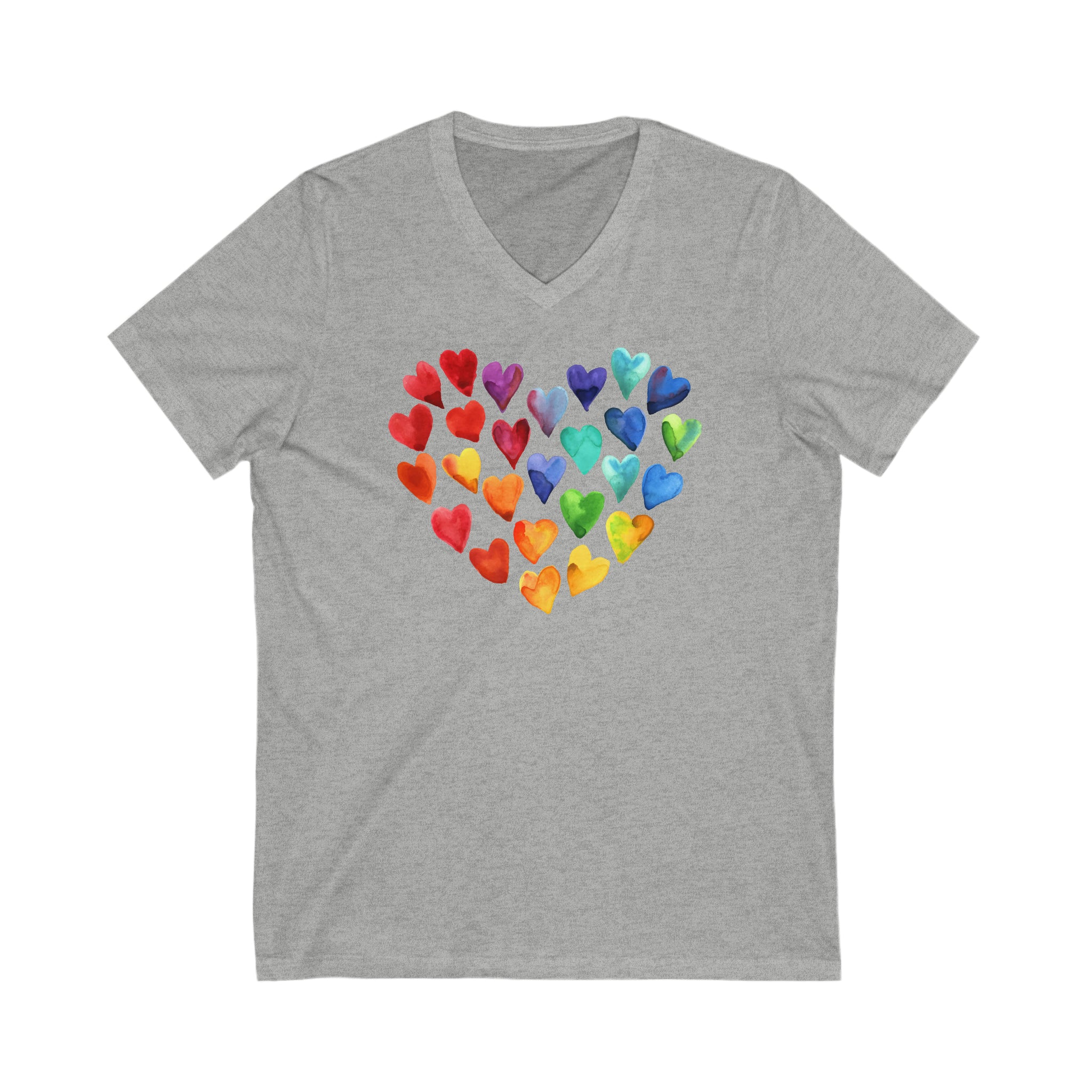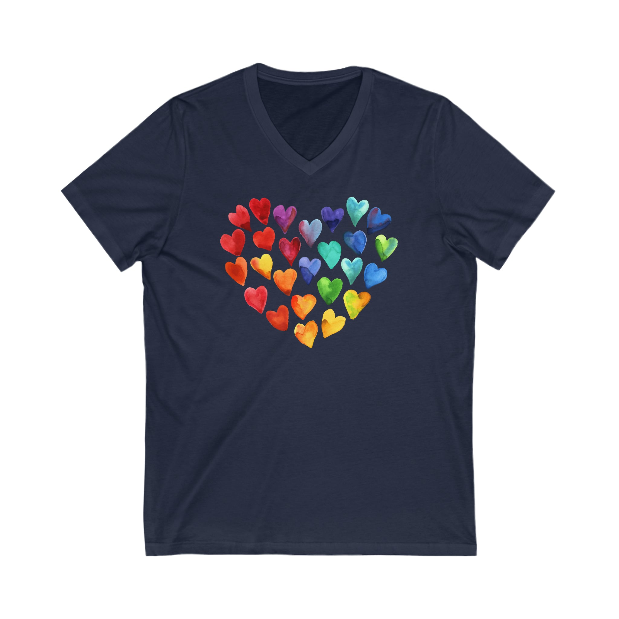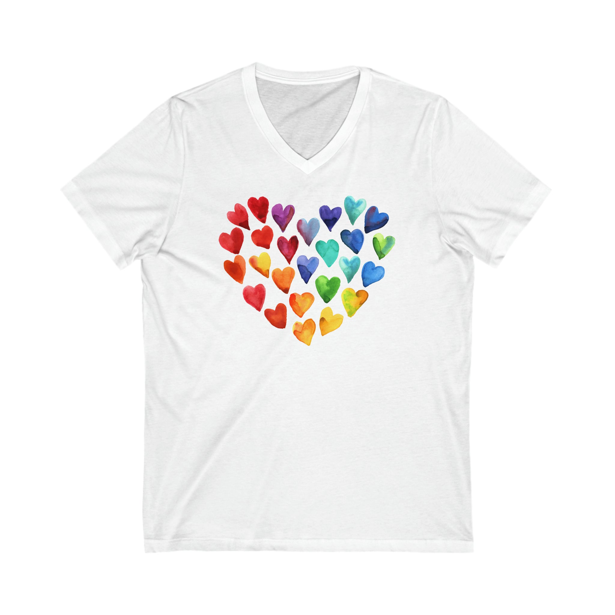 Watercolor Art Hearts Love Aesthetic Shirt | Valentine's Day Gift | Unisex V-neck T-shirt