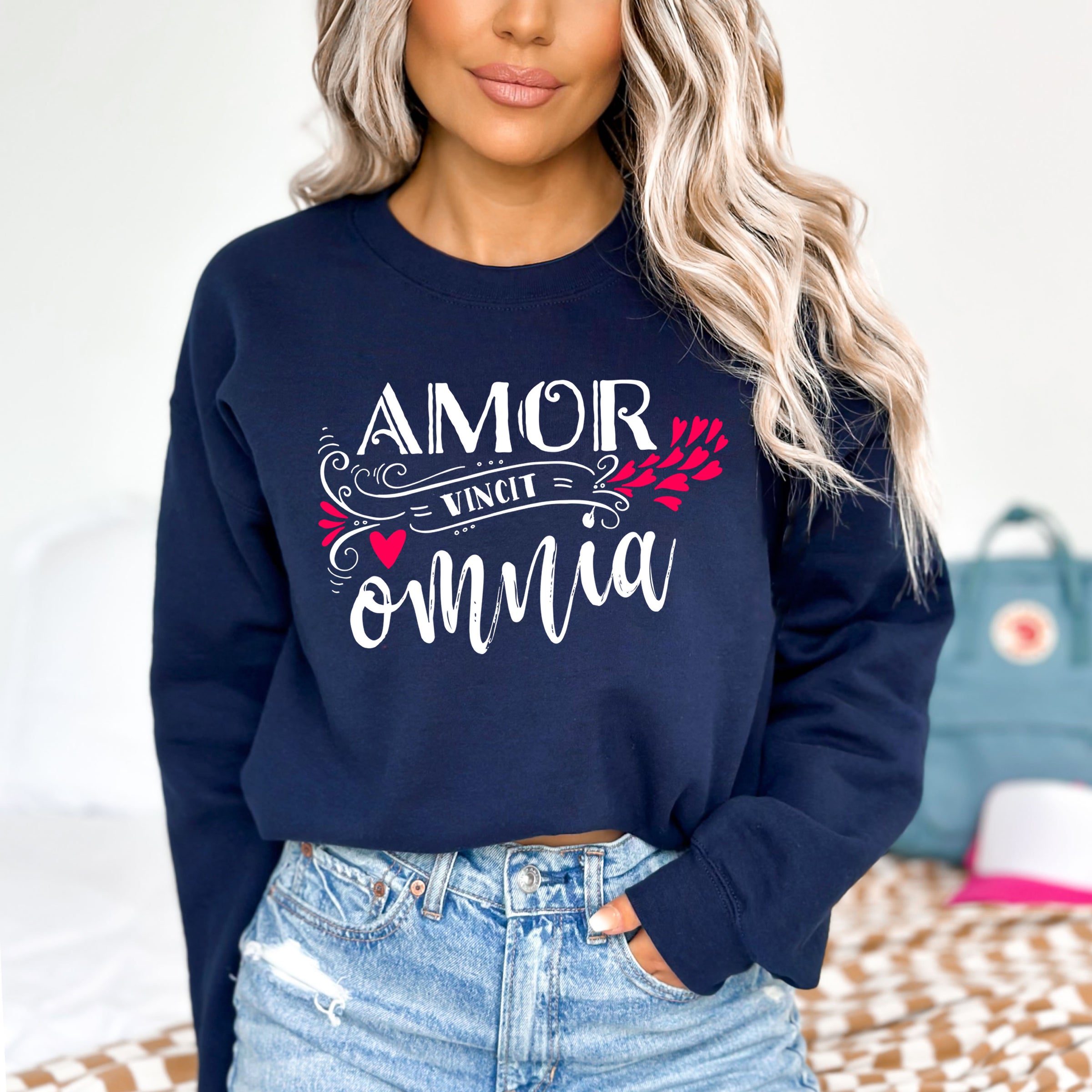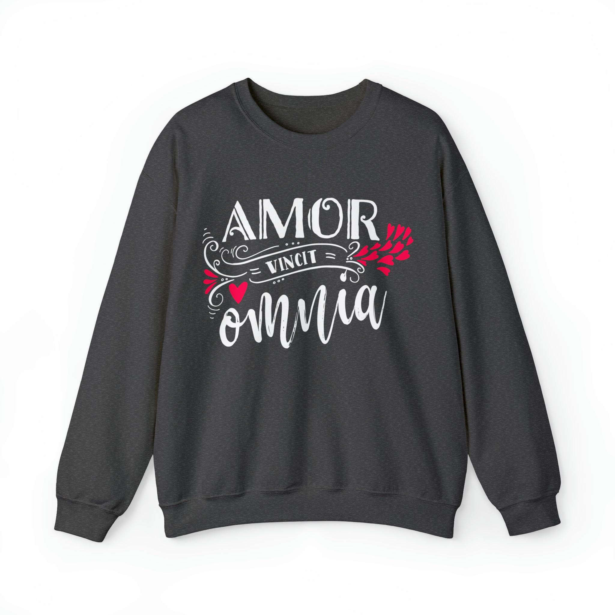 Our Valentine Heart Shirt features the text Amor Vincit Omnia (Love Conquers All) and is the perfect Valentine gift for her or for any time of the year to show your love! This crewneck sweatshirt comes in 4 colors.
