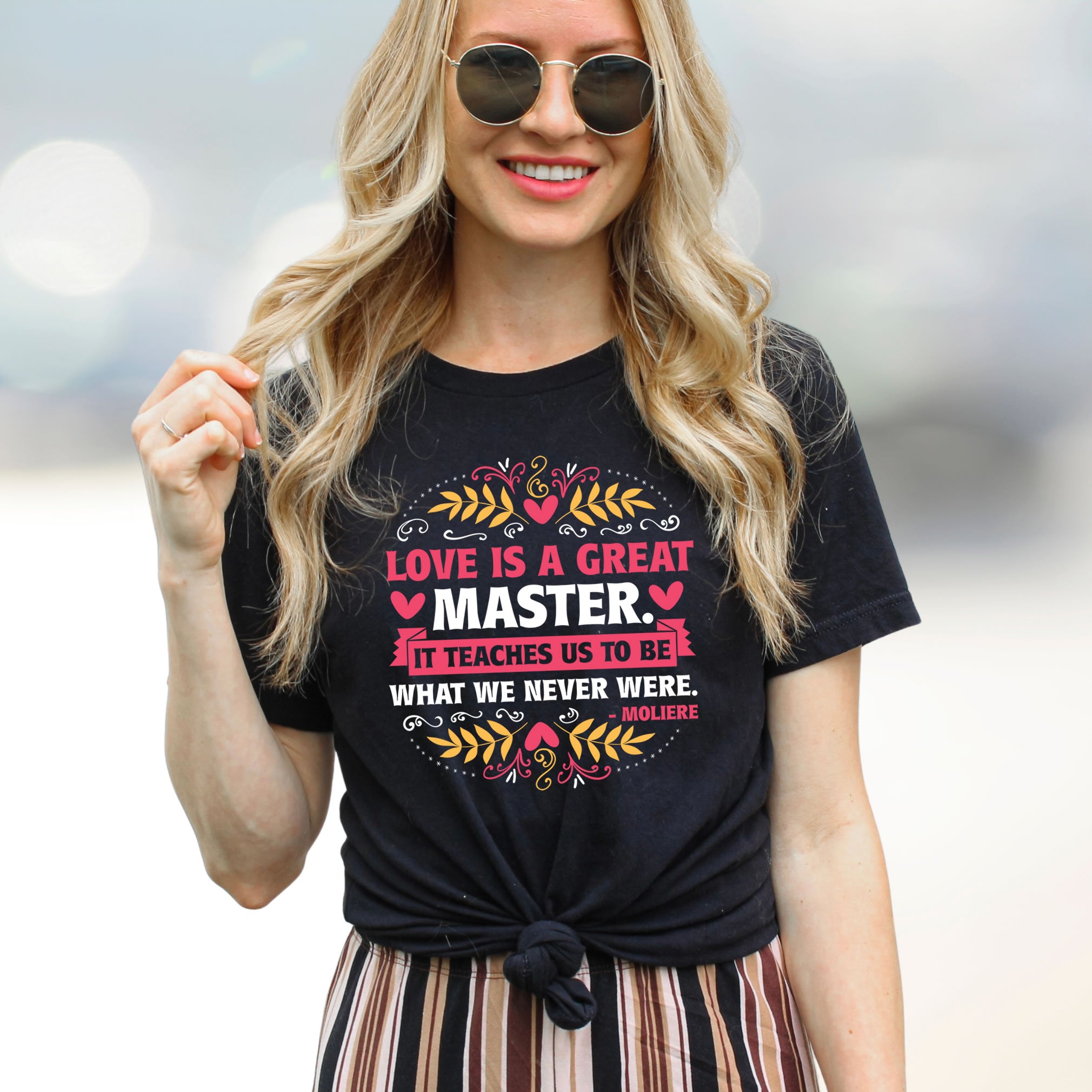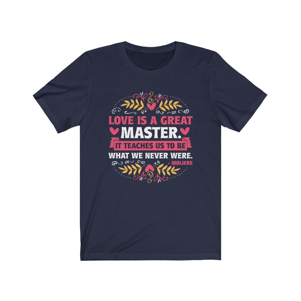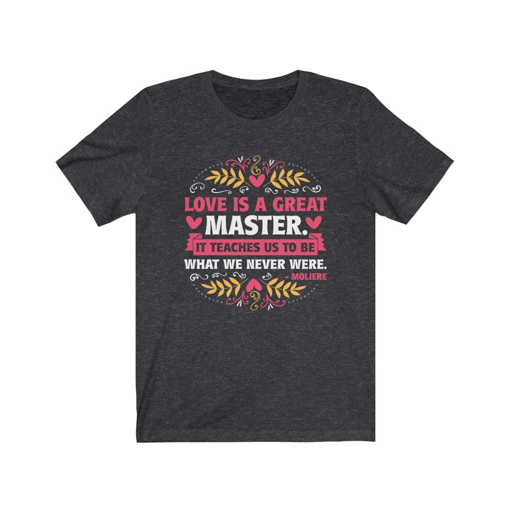 Love Is a Great Master Valentine's Day Shirt | Moliere Literary Quote | Unisex Jersey T-shirt