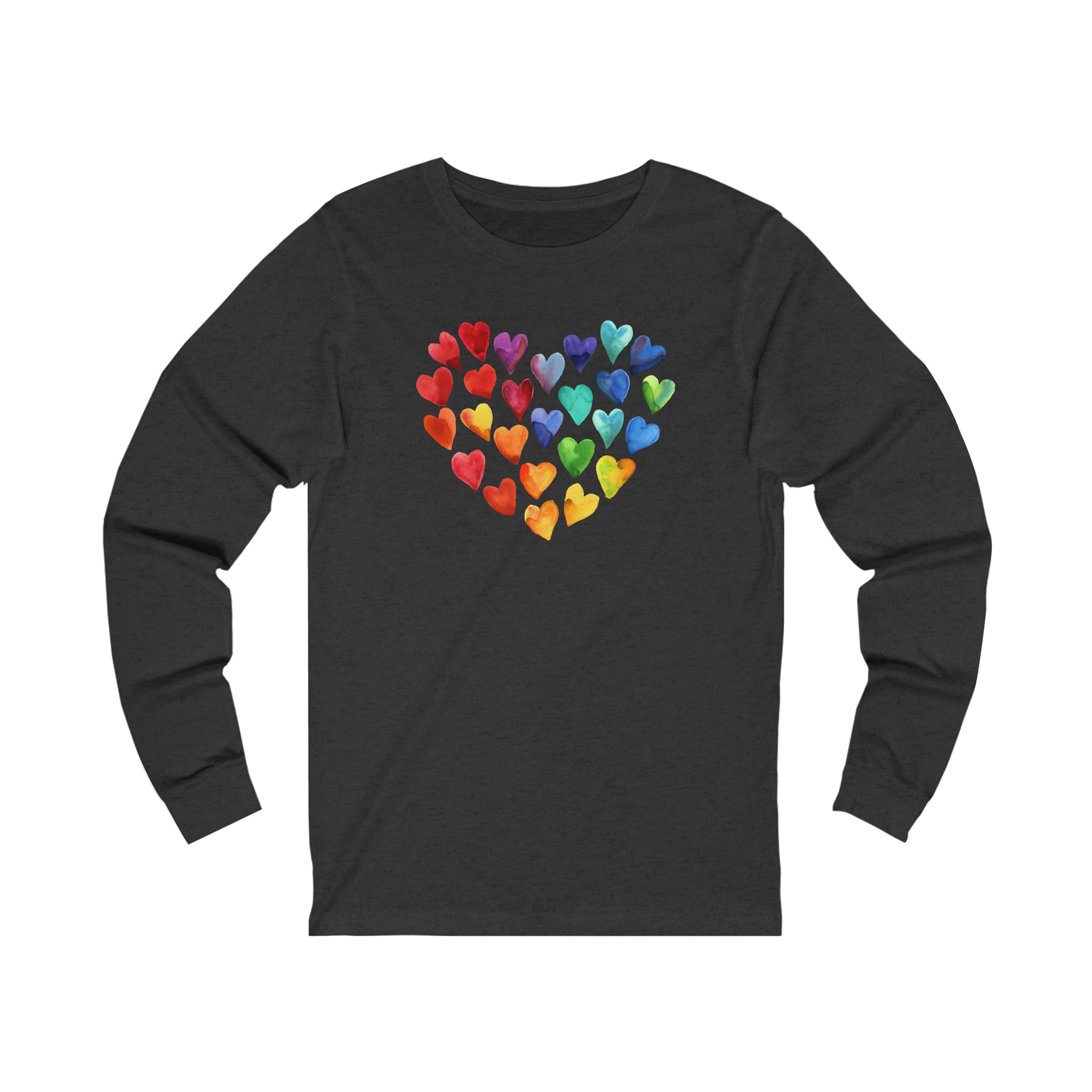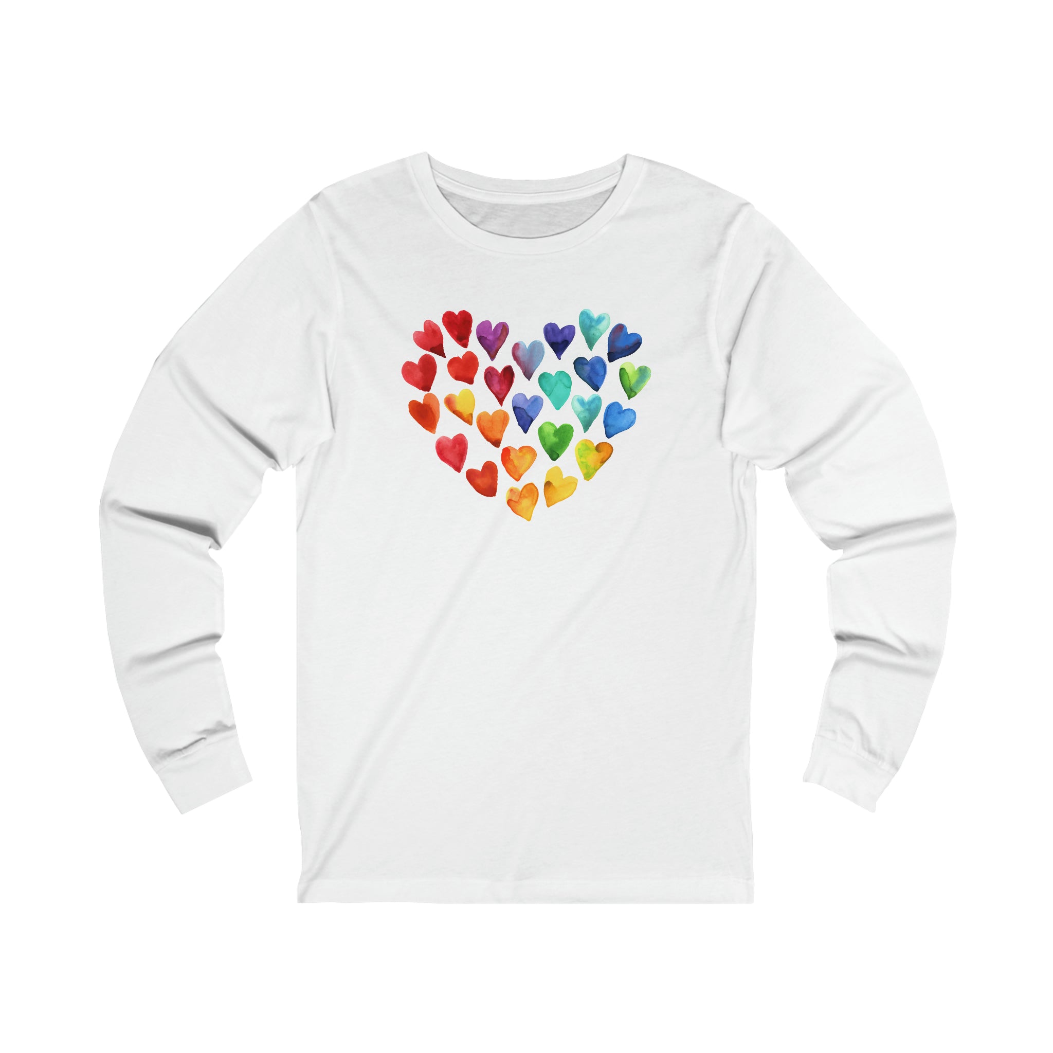 Watercolor Art Hearts Love Aesthetic Shirt | Valentine's Day Gift | Unisex Jersey Long Sleeve T-shirt