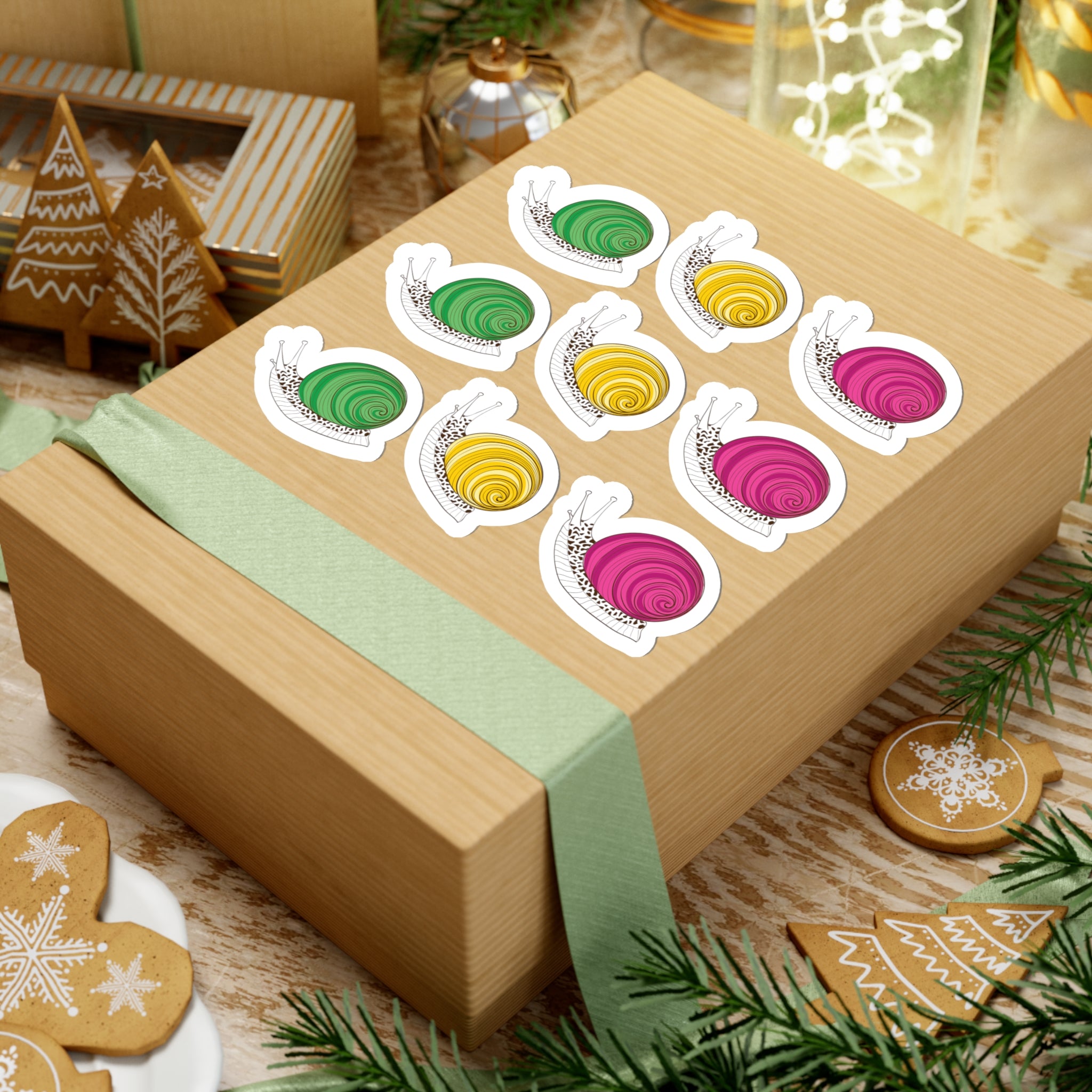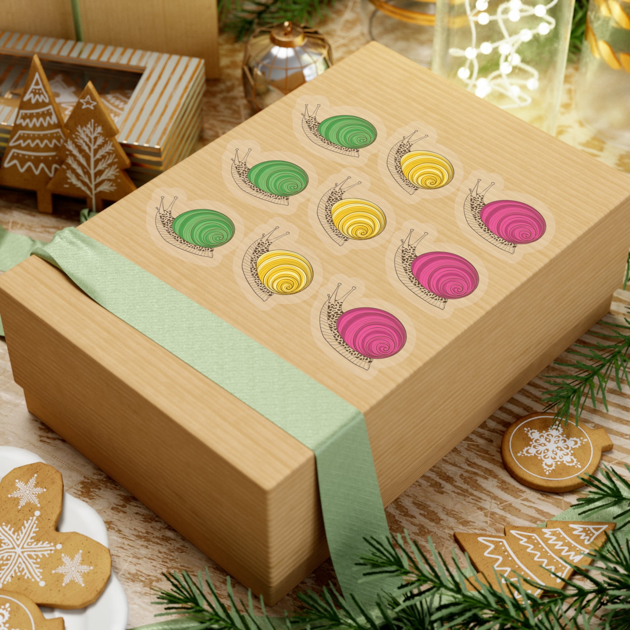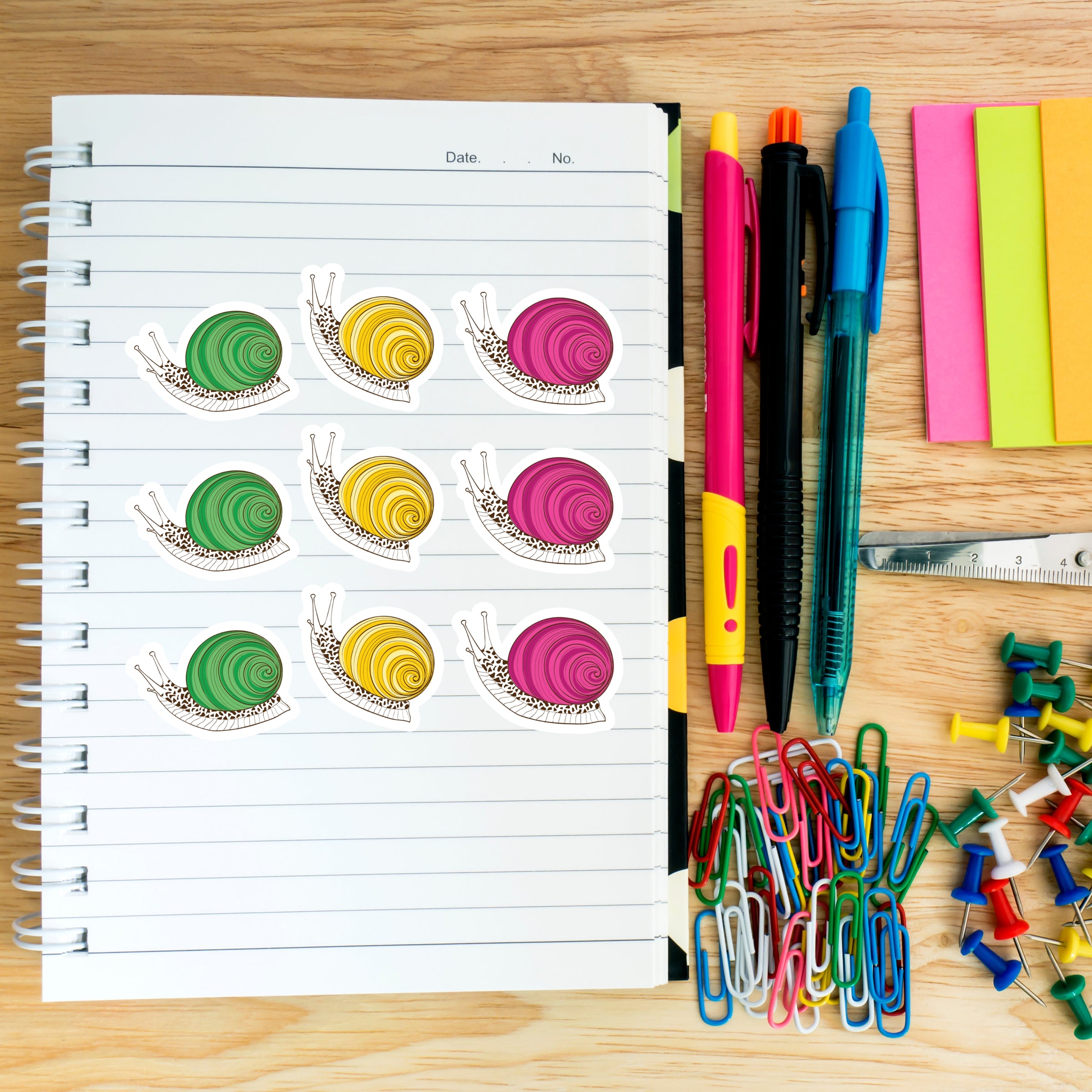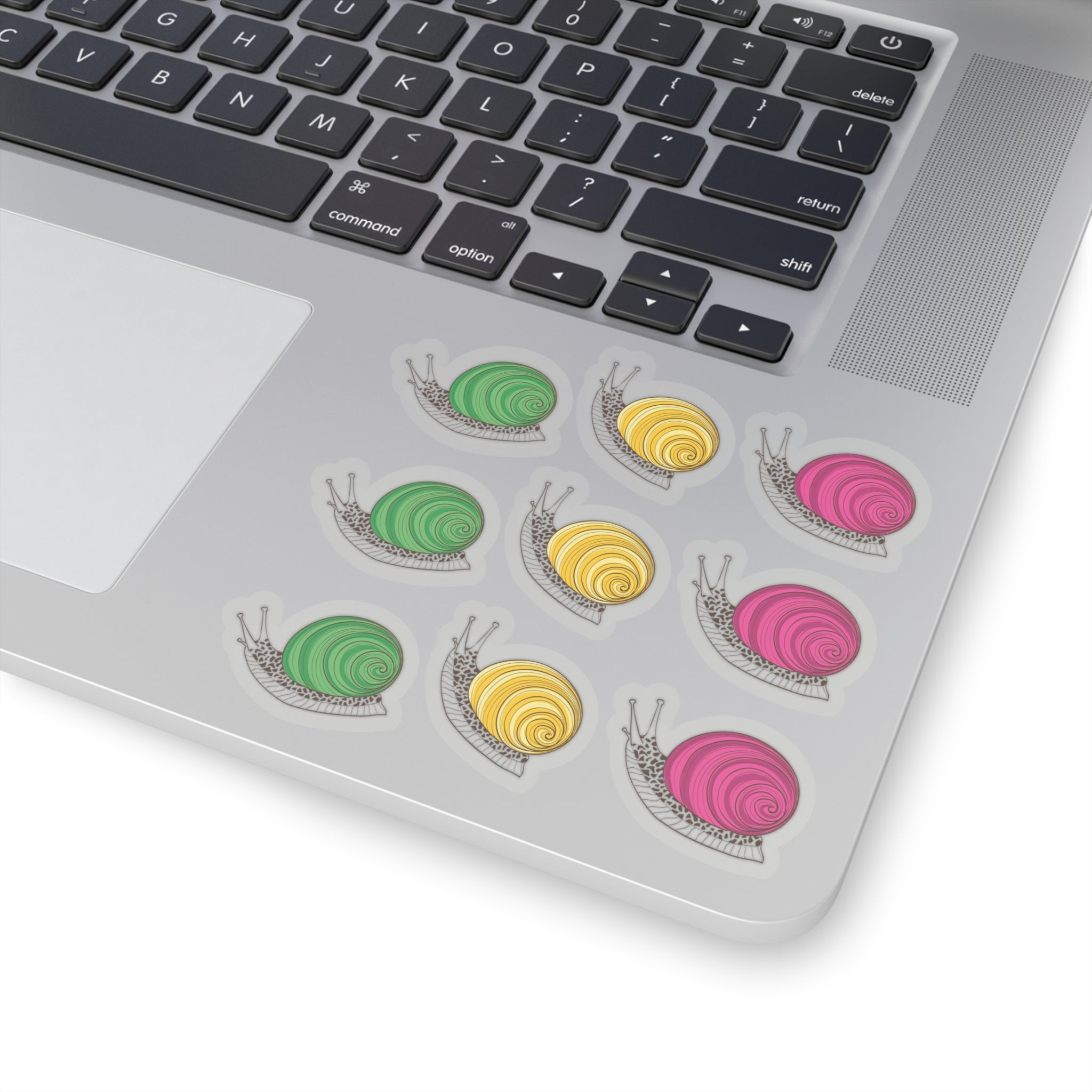 Our nature vinyl stickers features three cute snails and is a perfect nature lover gift for anyone who loves snails! Includes one 6" x 6" or 4" x 4" sheet with 3 peel-off stickers (3 sets of 3 snails) on transparent or white backgrounds.