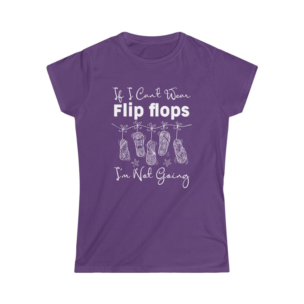 Our funny summer shirt features the text "If I can't wear flip flops I'm not going" and is the perfect beach bum gift for your favorite beach lover! this women's slim fit t-shirt comes in 6 colors. PLEASE SEE SIZING INSTRUCTIONS IN PHOTO AREA.