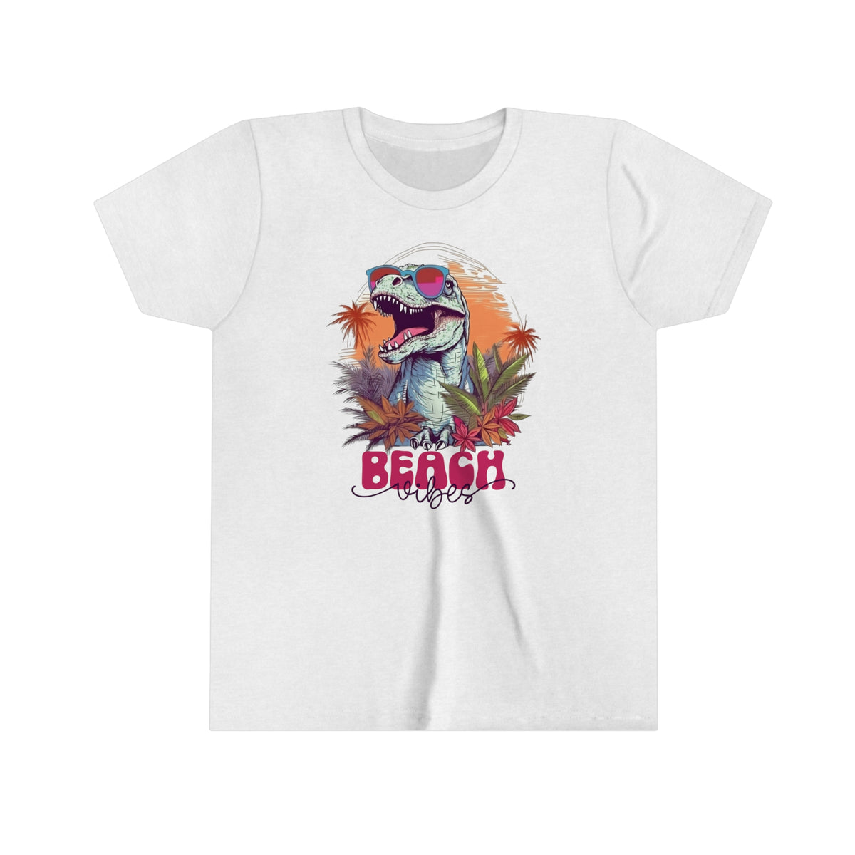 Our Beach Vibes T Rex Shirt is designed to bring a smile to your face and unleash your inner dinosaur lover while embracing the essence of beach life! This youth jersey t-shirt features Beach Vibes text with the sunglasses-wearing t-rex .