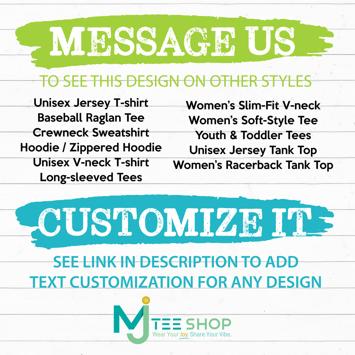 Message us at info@mjteeshop.com if you would like to see this design on other styles OR if you would like it customized!